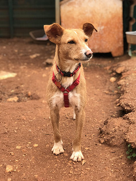 O meu temperamento: sou uma cadela muito tímida e muito receosa dos humanos. Gosto da presença de outros cães e sinto-me mais segura quando estou com eles. Já estive em duas casas de acolhimento, com outros cães, e melhorei um bocadinho a minha socialização, mas ainda preciso de passar mais tempo com os humanos pois, apesar de ter melhorado um pouco, ainda não me conseguem tocar ou levar a passear. Gostaria de encontrar uma casa onde houvesse outros cães e uma família que fosse muito paciente e que me conseguisse mostrar o que é ser amada, para que eu deixasse de ter medo dos humanos.