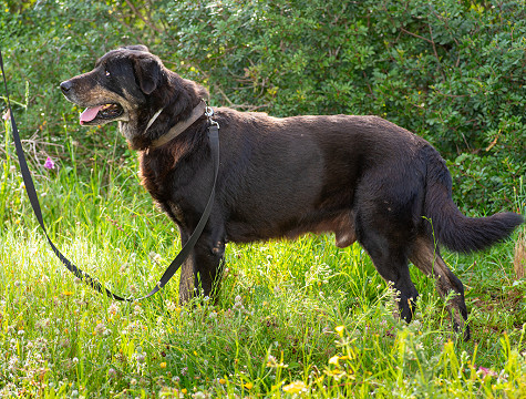 O meu temperamento: sou um cão calmo mas cheio de personalidade. Sou afetuoso com os humanos e sou também obediente, Só não gosto muito de alguns cães e reajo quando passo por cães dos quais não gosto. Uma casa sem outros cães e com espaço exterior para eu esticar as patas seria o ideal para mim.Serei um bom companheiro para qualquer pessoa que me acolher na sua vida.