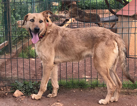 A minha história de vida: tive um início de vida complicado. Comecei por pertencer a uma família que, por não me querer mais, acabou por me entregar a um sem abrigo que me tinha na corrente, pois não tinha condições para me manter. Uma família que vivia perto viu a situação e viu como eu estava triste e pediram ao sem abrigo para me entregar, o que ele fez em troca do pagamento das despesas que tinha tido comigo. A família salvou-me da corrente, mas infelizmente também não me podia manter com eles, por isso levaram-me para o abrigo, onde vivo desde janeiro de 2025.