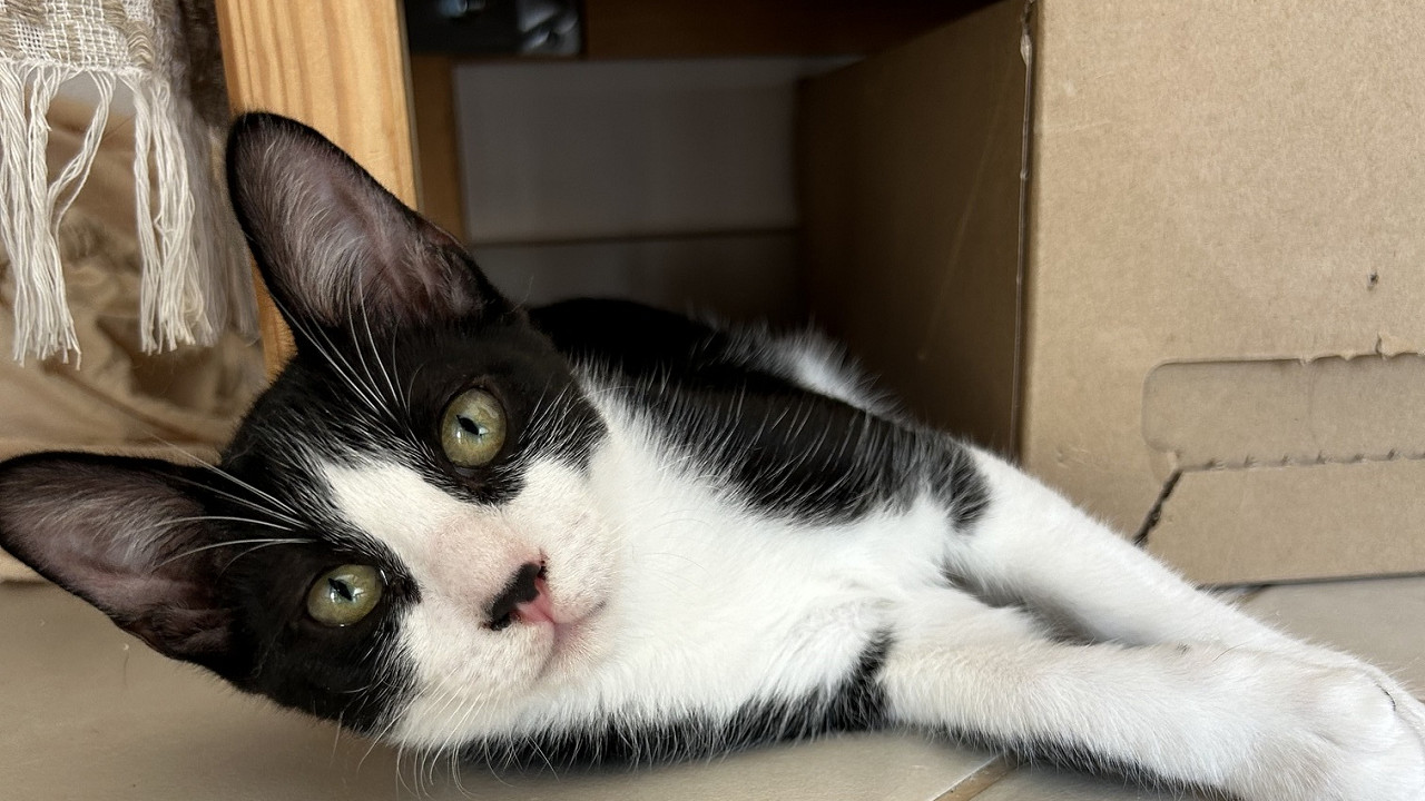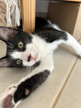 O meu temperamento: sou um gato confiante que se comporta mais como um cão do que como um gato. Adoro passar tempo com humanos e outros gatos, mas responderei e “ladrarei” à minha maneira atrevida. Posso não gostar de ser acariciado, mas virei sempre abraçar-te e dormir ao teu lado à noite. Fico triste quando sou deixado sozinho e estou habituado a estar sempre com muitos gatos e humanos.
