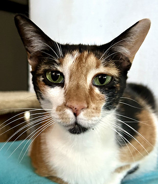 O meu temperamento: sou uma rapariga grande que adora comer! Alguns chamar-me-ão “voluptuosa” ou “curvilínea”. Sou muito amigável, tanto com os humanos como com os meus companheiros gatos. Mereço encontrar um lar amoroso, tal como os meus gatinhos, e, preferencialmente, um dono que partilhe a minha paixão pela comida.