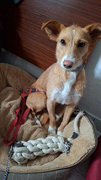 O meu temperamento: sou uma cadela muito tímida e muito receosa dos humanos. Gosto da presença de outros cães e sinto-me mais segura quando estou com eles. Já estive em duas casas de acolhimento, com outros cães, e melhorei um bocadinho a minha socialização, mas ainda preciso de passar mais tempo com os humanos pois, apesar de ter melhorado um pouco, ainda não me conseguem tocar ou levar a passear. Gostaria de encontrar uma casa onde houvesse outros cães e uma família que fosse muito paciente e que me conseguisse mostrar o que é ser amada, para que eu deixasse de ter medo dos humanos.