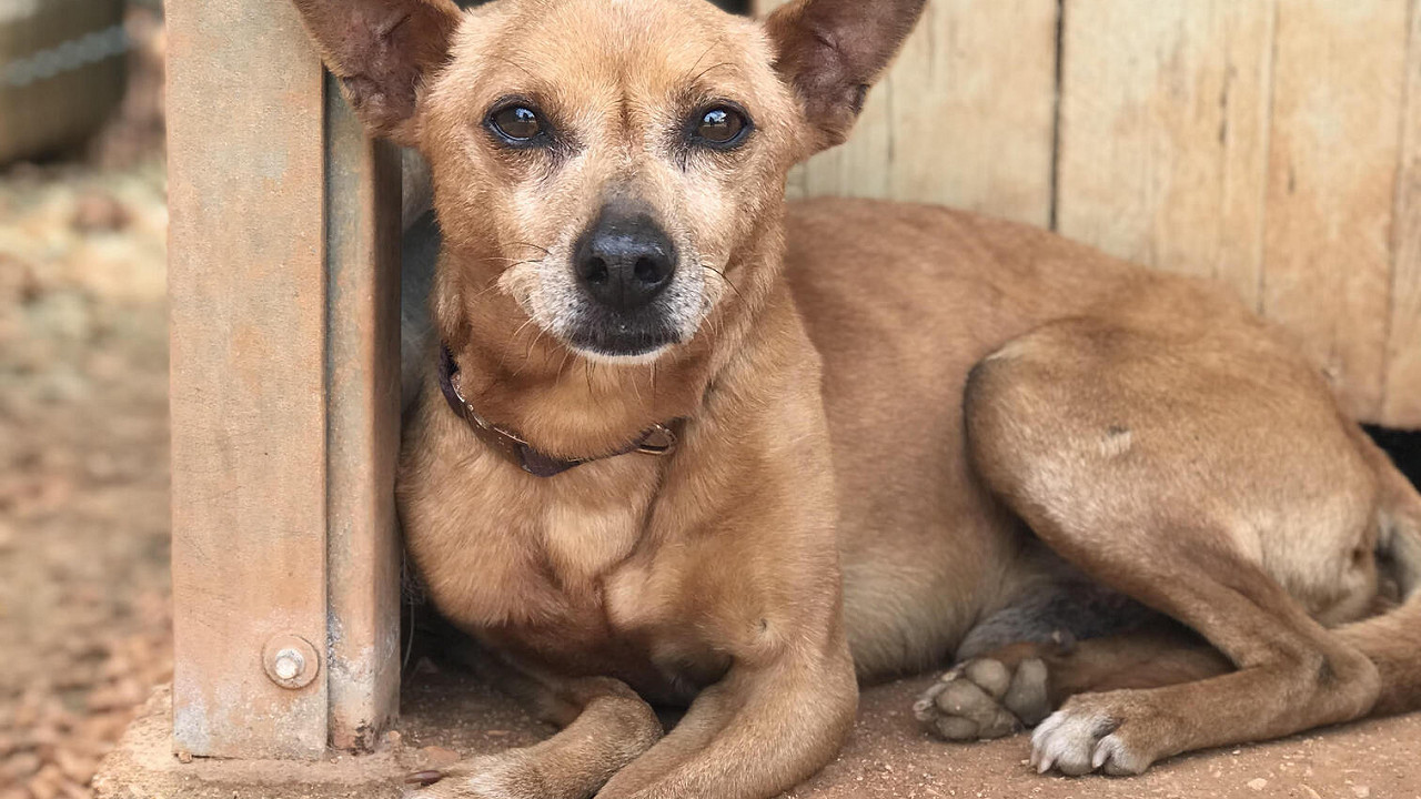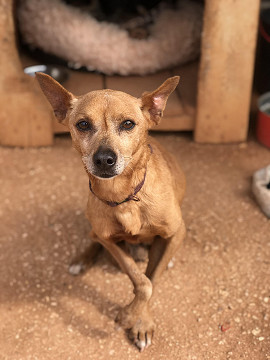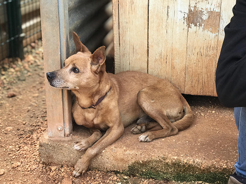 A minha história de vida: em fevereiro de 2025 fui encontrado por voluntários da cadela Carlota que estavam a fazer uma caminhada em Monchique. Encontraram-me no meio do nada, muito magrinho, cheio de pulgas e um pouco receoso. Tinha também uma para torta e eles levaram-me ao veterinário, para ser observado. No veterinário deram-me um desparasitante mas, como não havia nada a fazer em relação à pata, levaram-me para o abrigo.