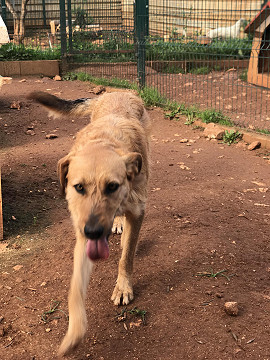 A minha história de vida: tive um início de vida complicado. Comecei por pertencer a uma família que, por não me querer mais, acabou por me entregar a um sem abrigo que me tinha na corrente, pois não tinha condições para me manter. Uma família que vivia perto viu a situação e viu como eu estava triste e pediram ao sem abrigo para me entregar, o que ele fez em troca do pagamento das despesas que tinha tido comigo. A família salvou-me da corrente, mas infelizmente também não me podia manter com eles, por isso levaram-me para o abrigo, onde vivo desde janeiro de 2025.